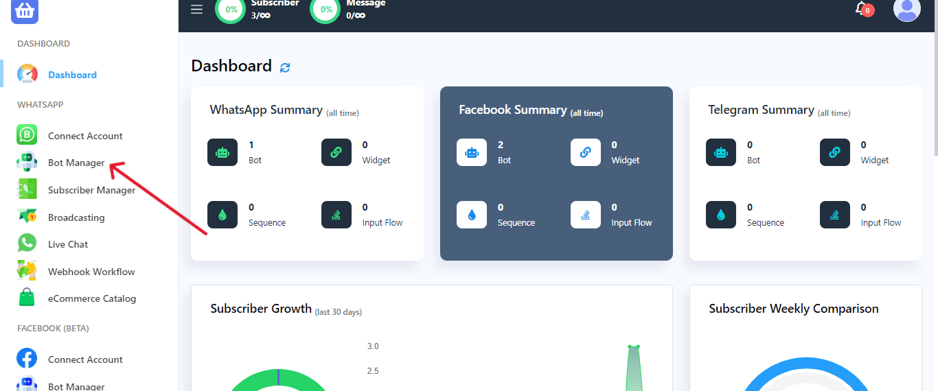 From the BotCommerce dashboard, navigate to “Bot Manager.”