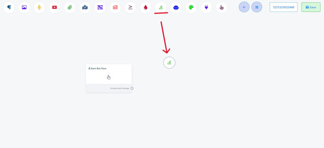 Add a Trigger: Drag a “Trigger” element from the dock menu and connect it to the “Start Bot Flow.”