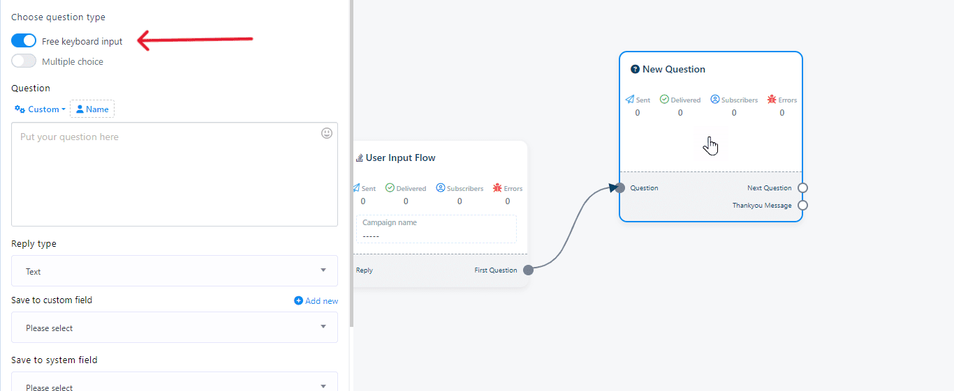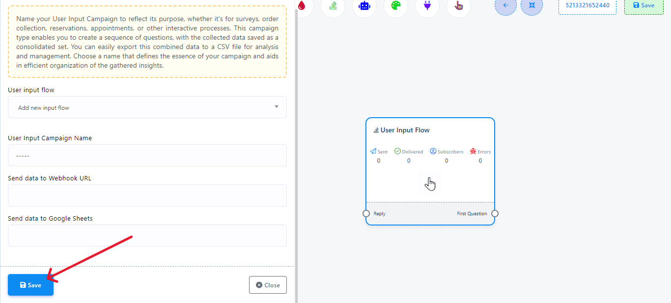Collecting user data through user input flow allows you to capture relevant information from users, which is stored in custom fields. This data can later be used as personalized variables or for campaign segmentation, optimizing the personalization and effectiveness of marketing strategies.