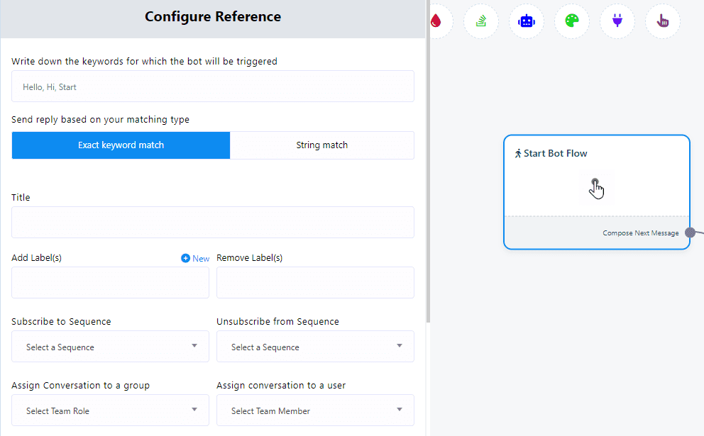 Click on “Create” to start a new bot. This will redirect you to the Visual Flow Builder.