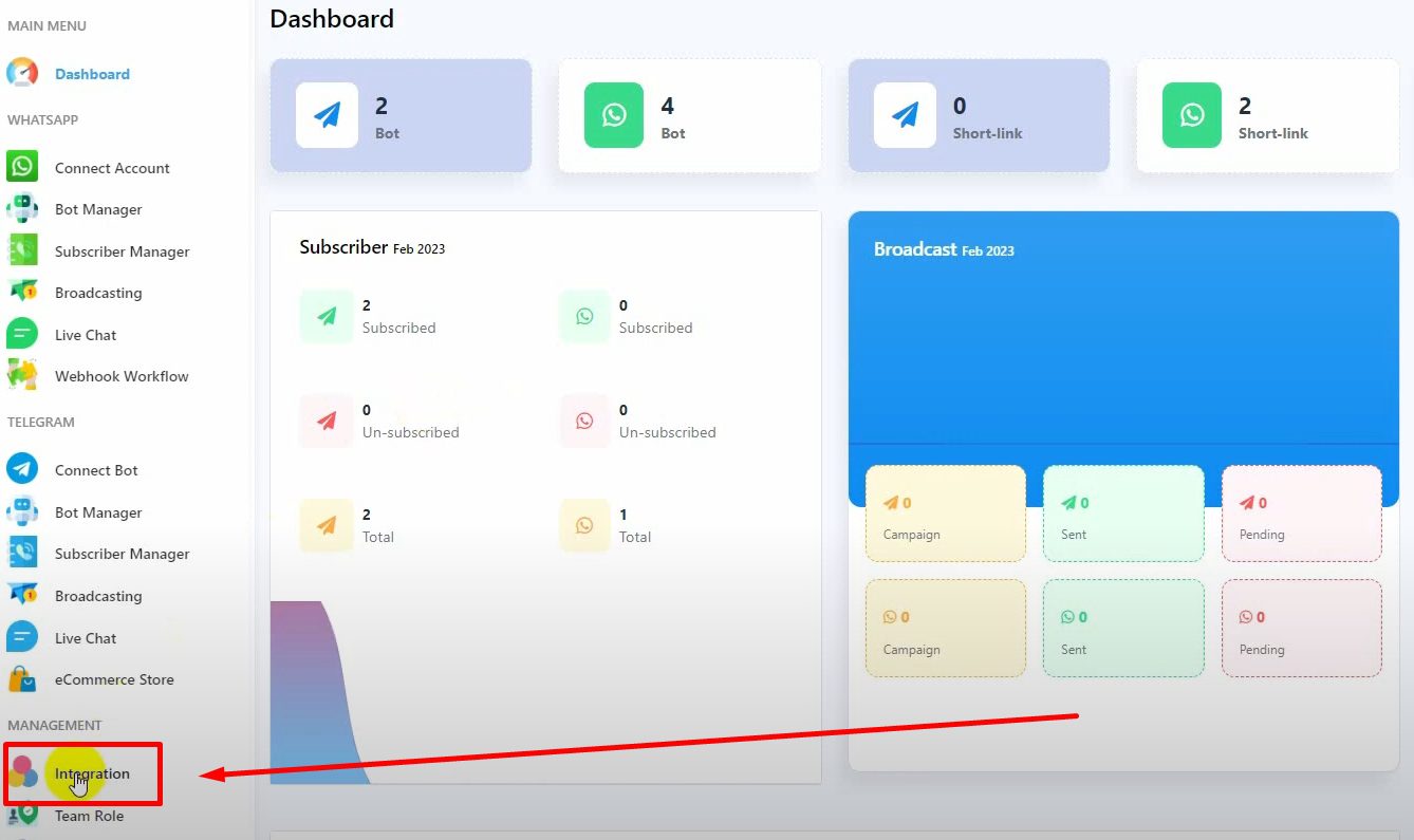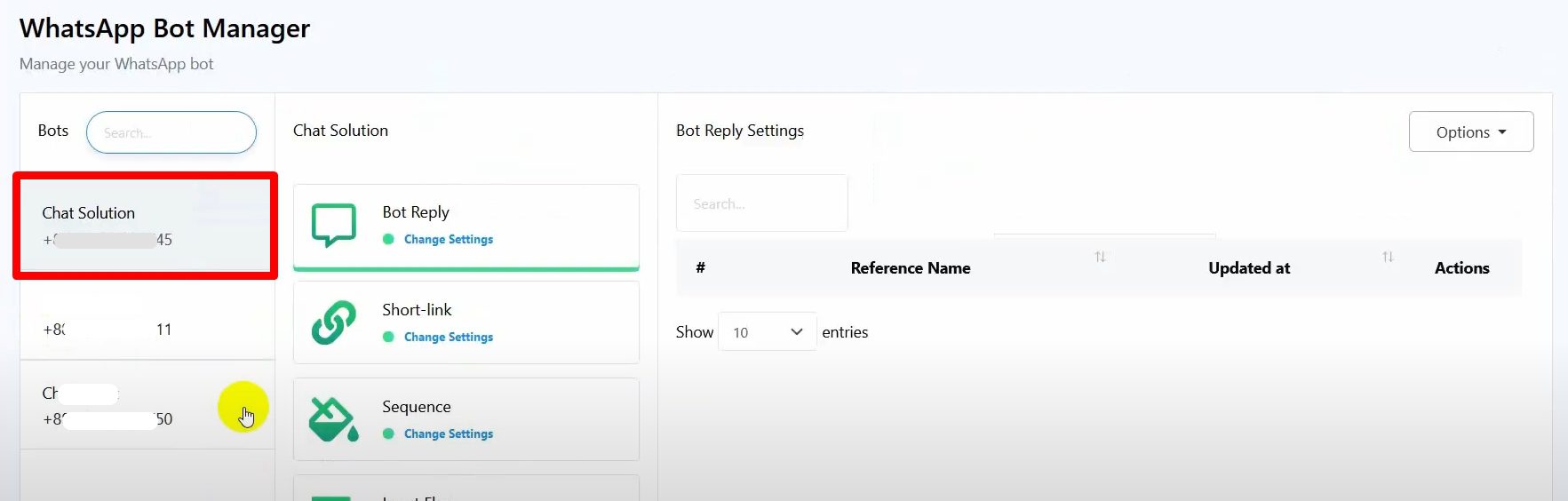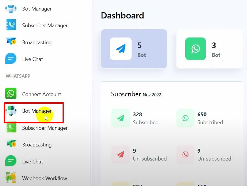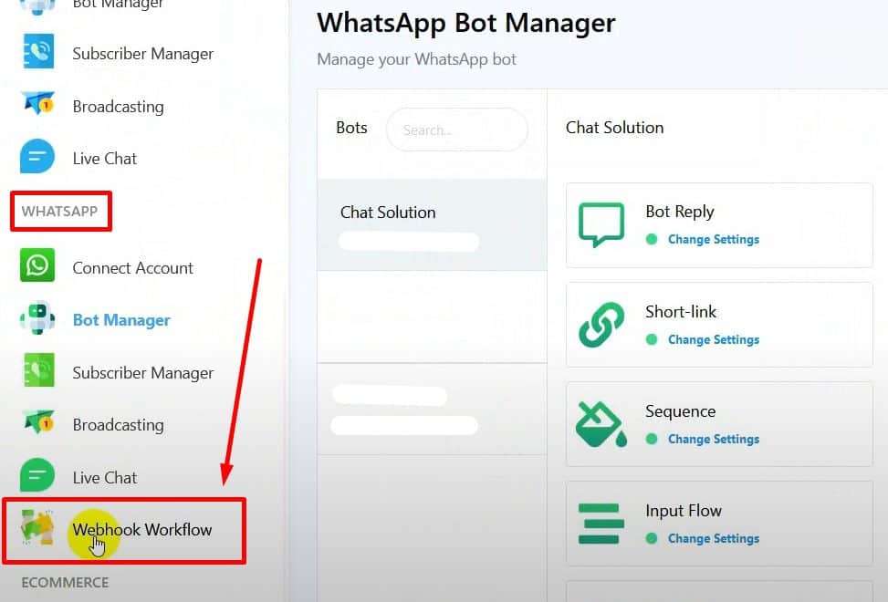 After integration, navigate to WhatsApp Bot Manager in BotCommerce.