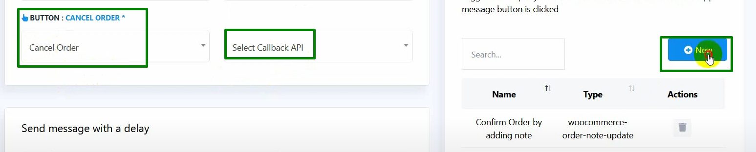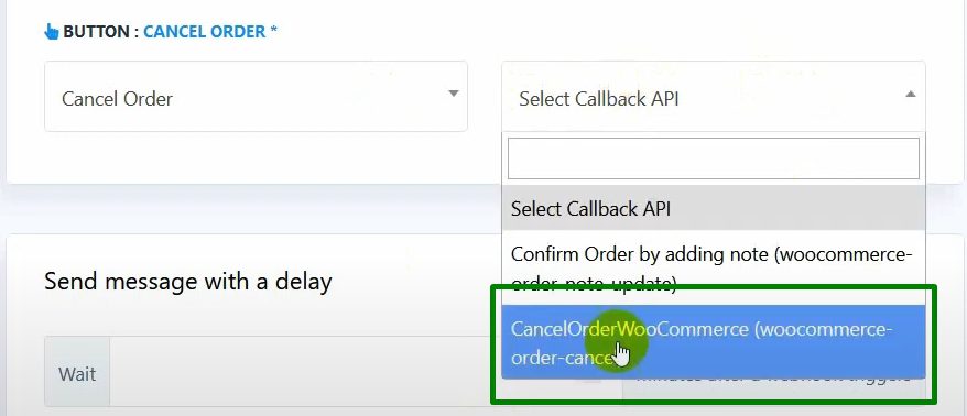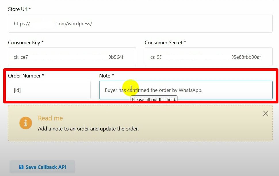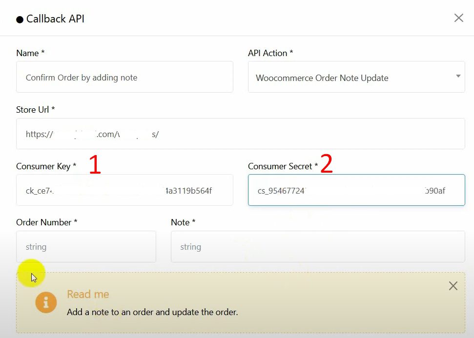 Create a callback API for confirming orders: Select “WooCommerce order note update” as the action.