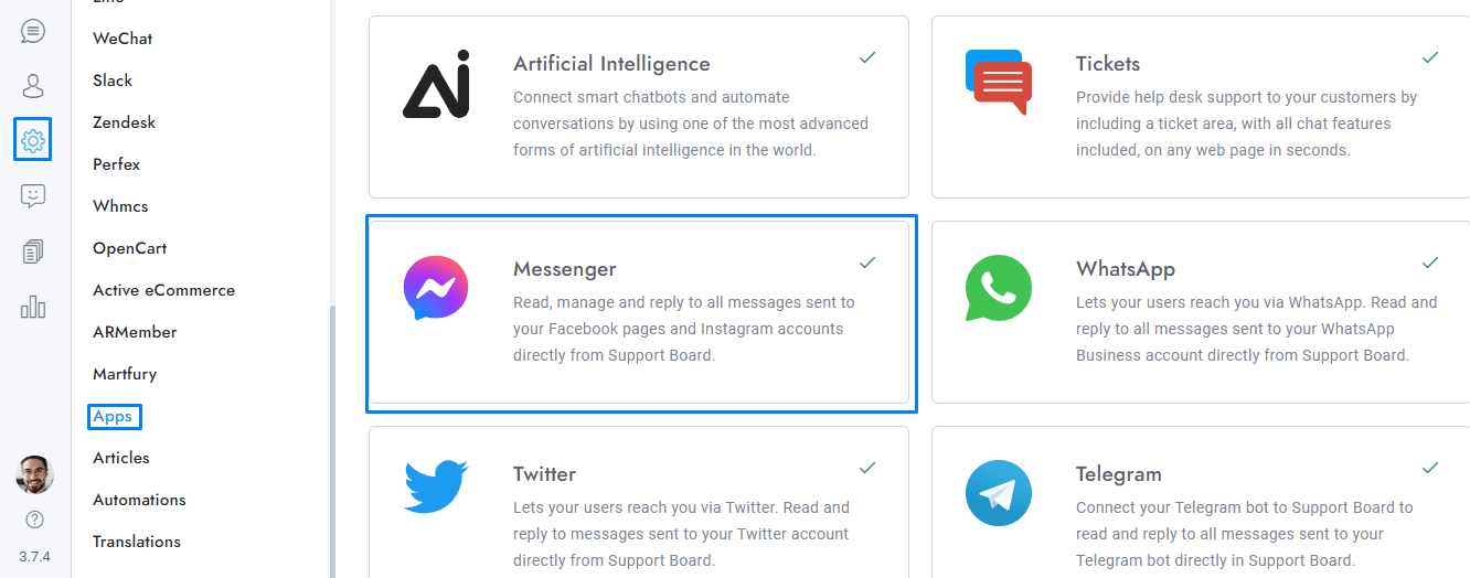 - You’re done. All messages sent to the Facebook pages and Instagram accounts you selected will appear in the conversation admin area of Chat. Mind that only new messages will be synchronized, the old ones will not be imported.
