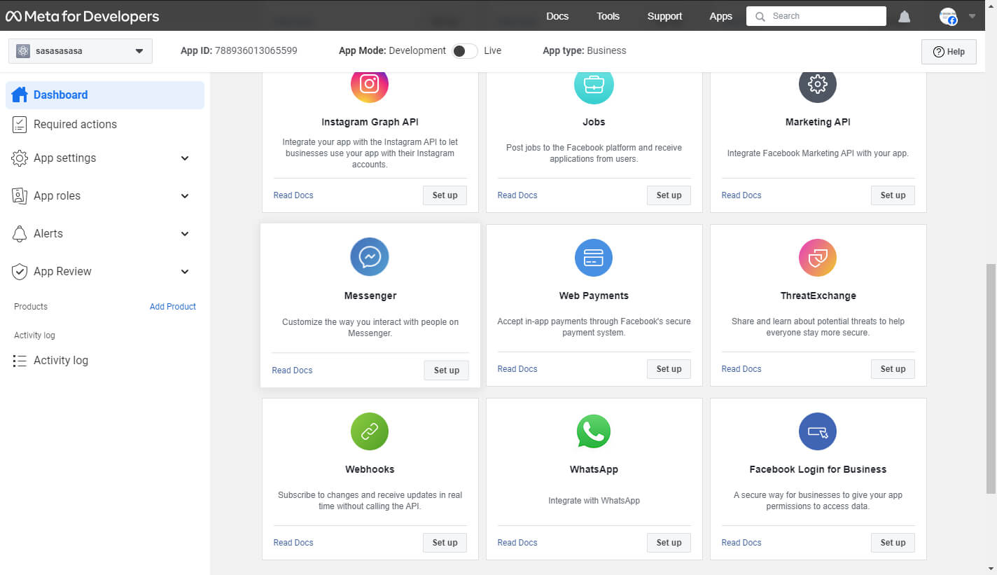 - From the menu on the left side, click on Add product. Choose Messenger.