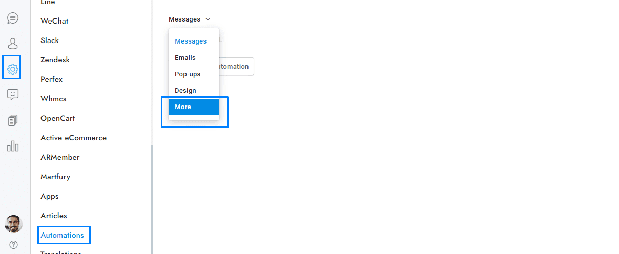 - Agents and admins can send conversation transcripts to users by clicking the Transcript button in the top-right corner of the admin’s conversation window.