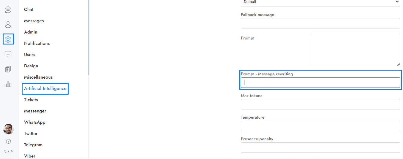 - The assistant is used only for the chatbot, and smart replies, not for the message rewriting and other features.
