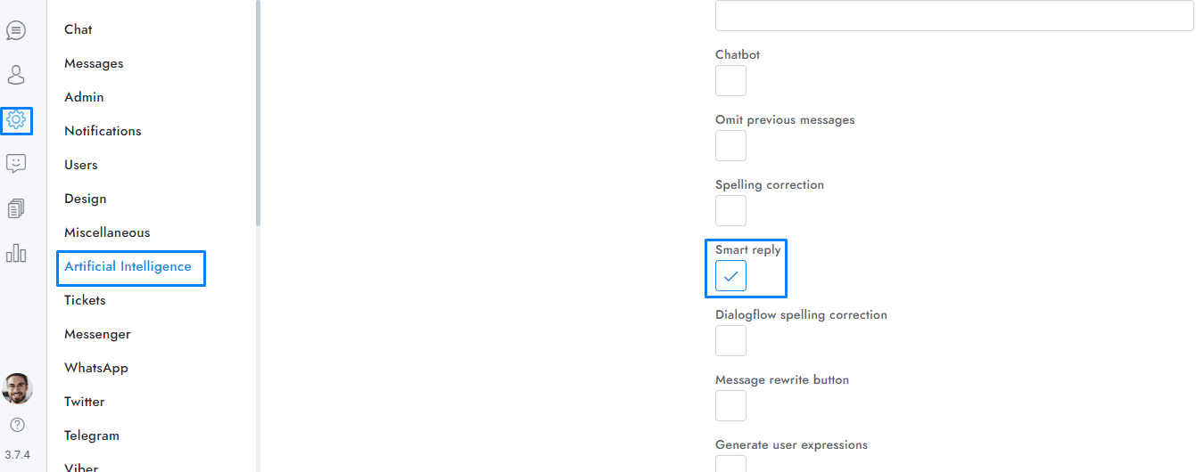 This feature allow to enable the Smart Reply feature also if the chatbot is not active. If the chatbot is active the Smart Reply feature will use OpenAI automatically.