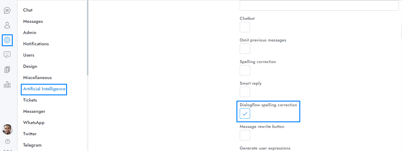 In the case where Dialogflow is unable to find the appropriate response to the user’s message, this function verifies if there are any spelling errors. If any such errors exist, Dialogflow is prompted again with the correctly spelled version of the message for an accurate response. Although it has a higher priority, this feature can still work together with the Google Search spelling correction feature.