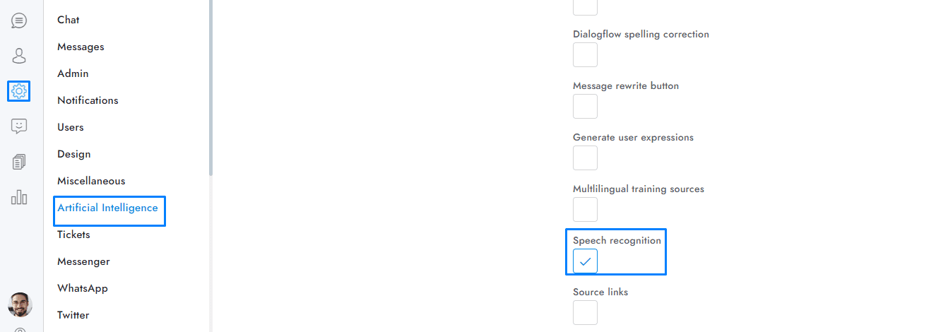 - You do not need to activate this feature for the chatbot to understand audio messages. The speech recognition feature of the chatbot is always enabled.