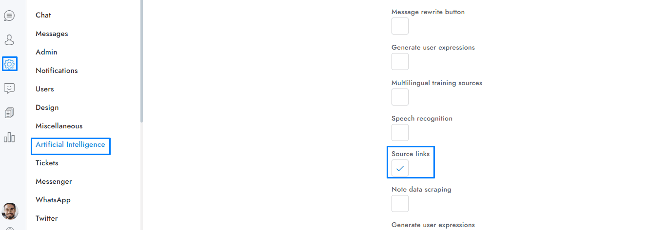 When this option is active, the response will automatically include the links to the sources and training data used for generating the answer.