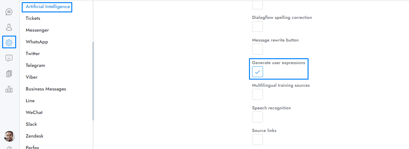 When this option is active, OpenAI will generate new user expressions in real time when you open the chatbot training window.
