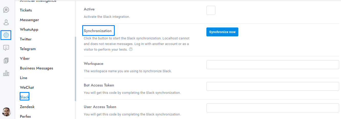 To sync Slack click the button Synchronize now of the Settings > Slack area and follow the instructions.