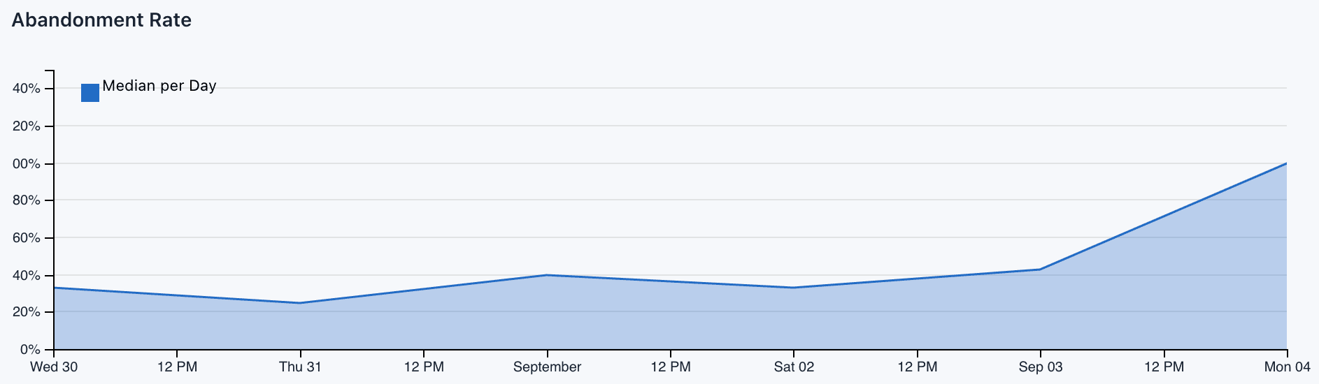 Abandonment Rate: This is the average number of abandonments per users, shown as a percentage.