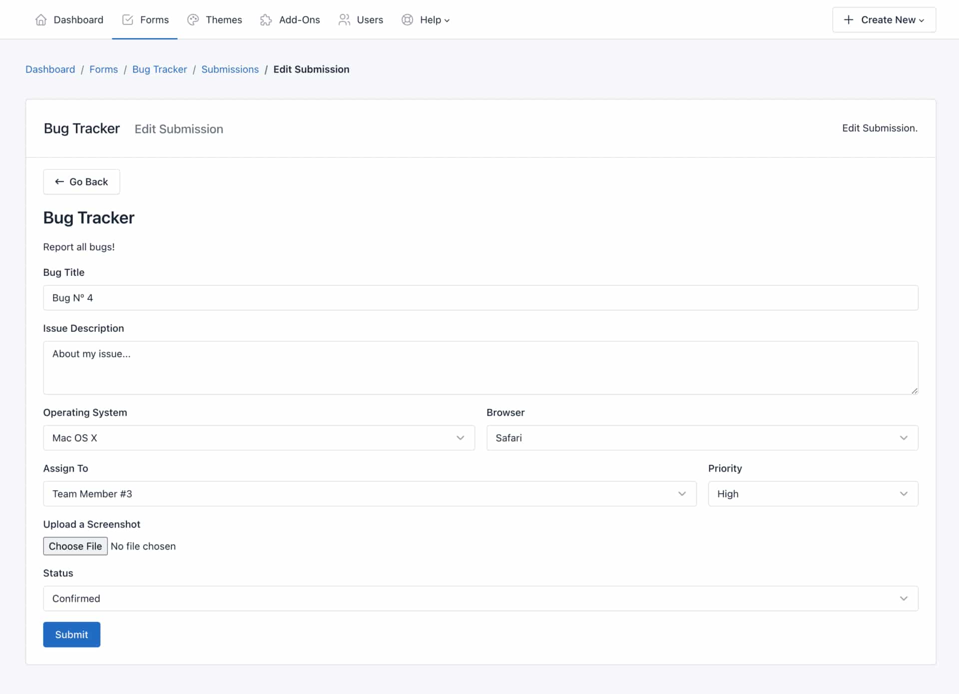 - Submission Details: Shows the information collected by your form fields.